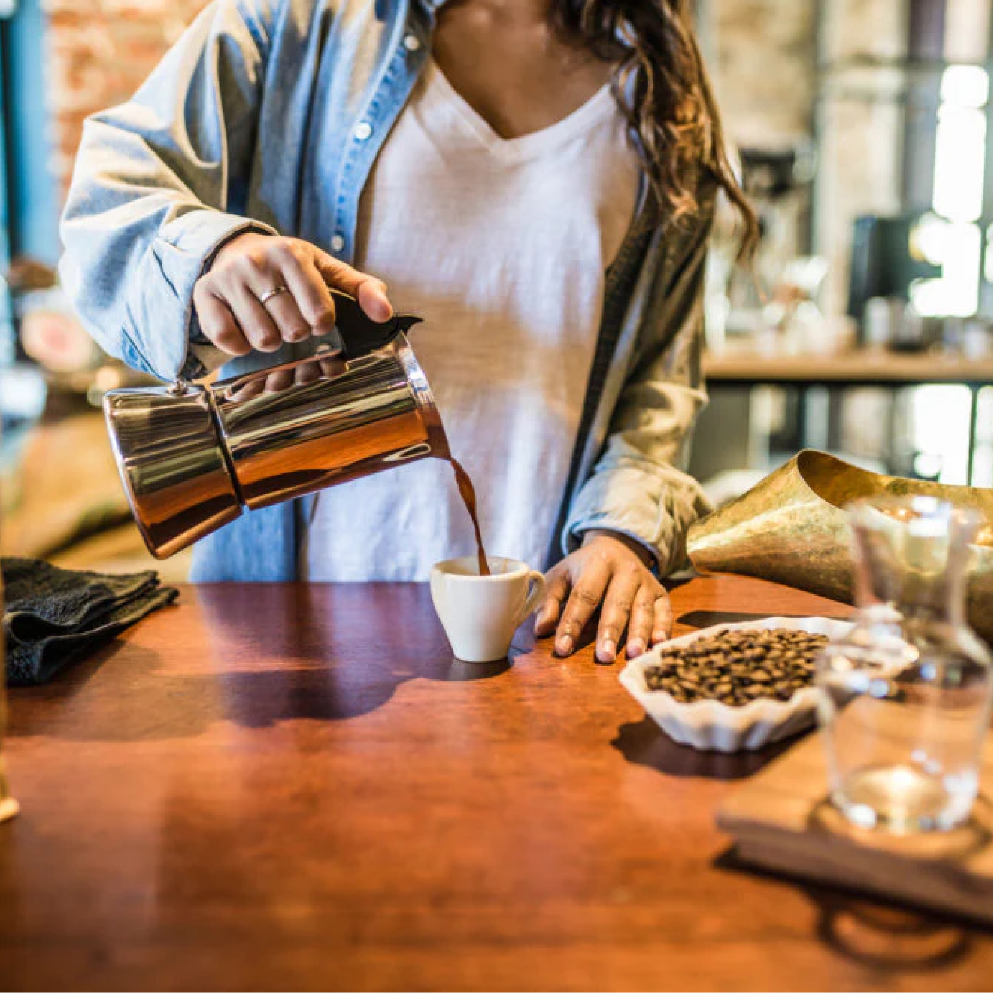 The Moka Pot can be used to produce a cup which, while not quite espresso, is viscous and rich. You are getting close without a lot of fancy and expensive equipment. With great, freshly and correctly ground coffee, a bit of effort and some frothed milk you can even produce a flat white that is pretty darn close to acceptable. Froth your milk with a Bialetti hand frother (if you want to stay away from electric gadgets) or get an induction milk frother – these do a pretty solid job. Consider using a moka pot at home and drinking your espresso in a cafe where a skilled, experienced barista is making your coffee on a top quality (and very expensive) commercial machine.