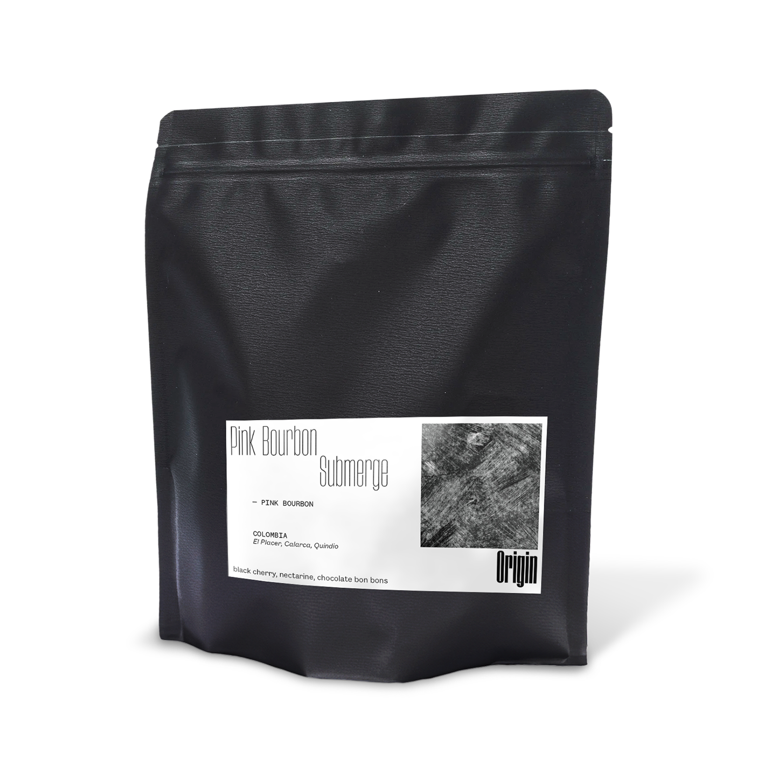 Pink Bourbon is a rare Arabica variety grown in Colombia, known for cherries that ripen to a salmon-pink hue rather than the typical red or yellow. The beans are often processed with honey or natural methods — sometimes with experimental fermentation — which enhances their sweetness and complexity. In cup, this Colombian Pink Bourbon may show pronounced fruit-forward character, with flavours such as black cherry, nectarine, chocolate bon bons, dessert wine sweetness, passion fruit, and a supple mouthfeel.